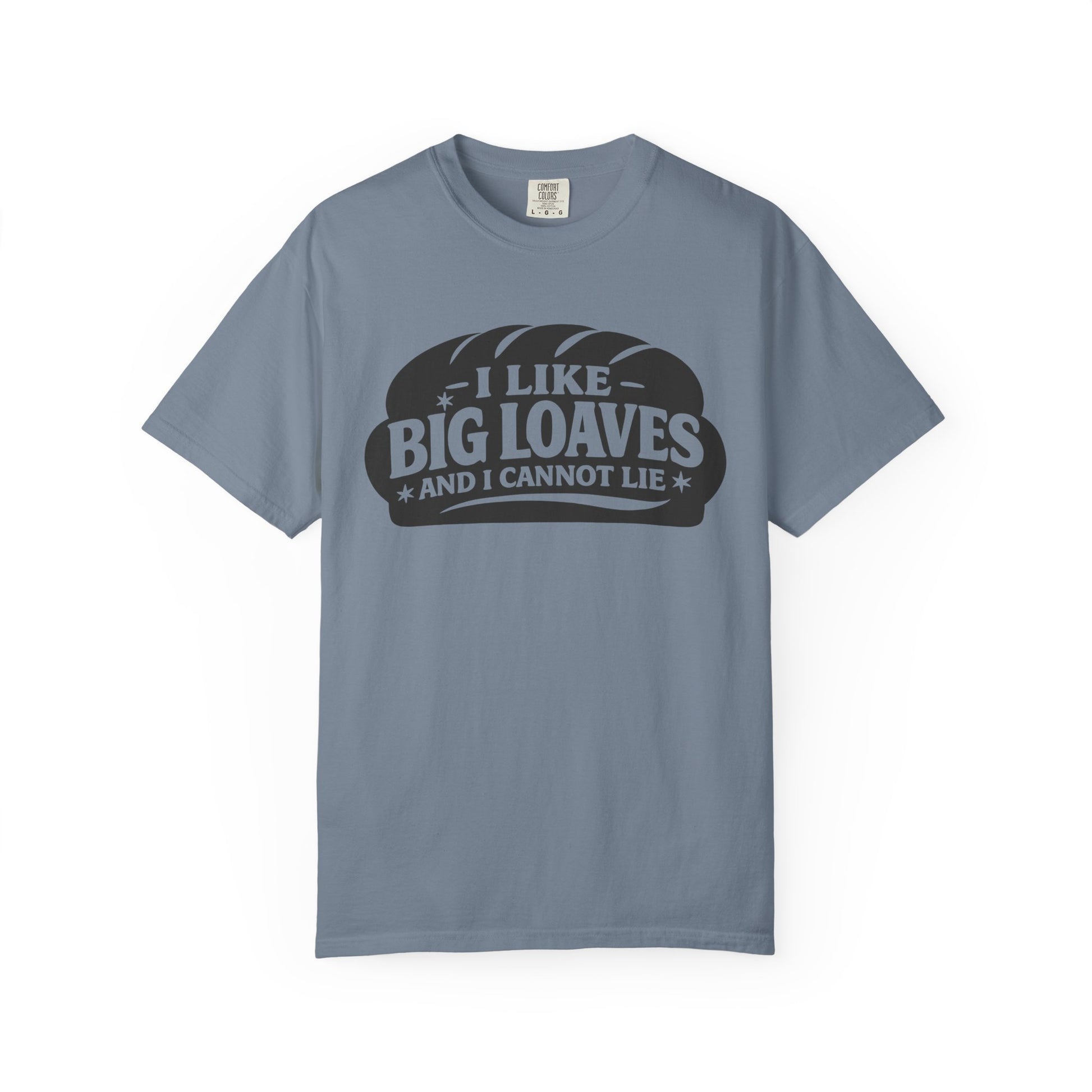 Soft, heavyweight cotton with a lived-in feel — this garment-dyed tee wears like a favorite from day one. The bold retro bread-loaf graphic reads “I Like Big Loaves And I Cannot Lie,” a cheeky, bakery-loving twist that lands with a wink. The relaxed cut and pre-shrunk ring-spun cotton give roomy, dependable comfort for long mornings at the farmers’ market, weekend baking sessions, or slow coffee and recipe-testing afternoons. Subtle pigment-dyed tones and double-needle stitching make this shirt feel crafted and durable; it’s the kind of top you reach for when you want to be comfortable and funny without trying too hard.