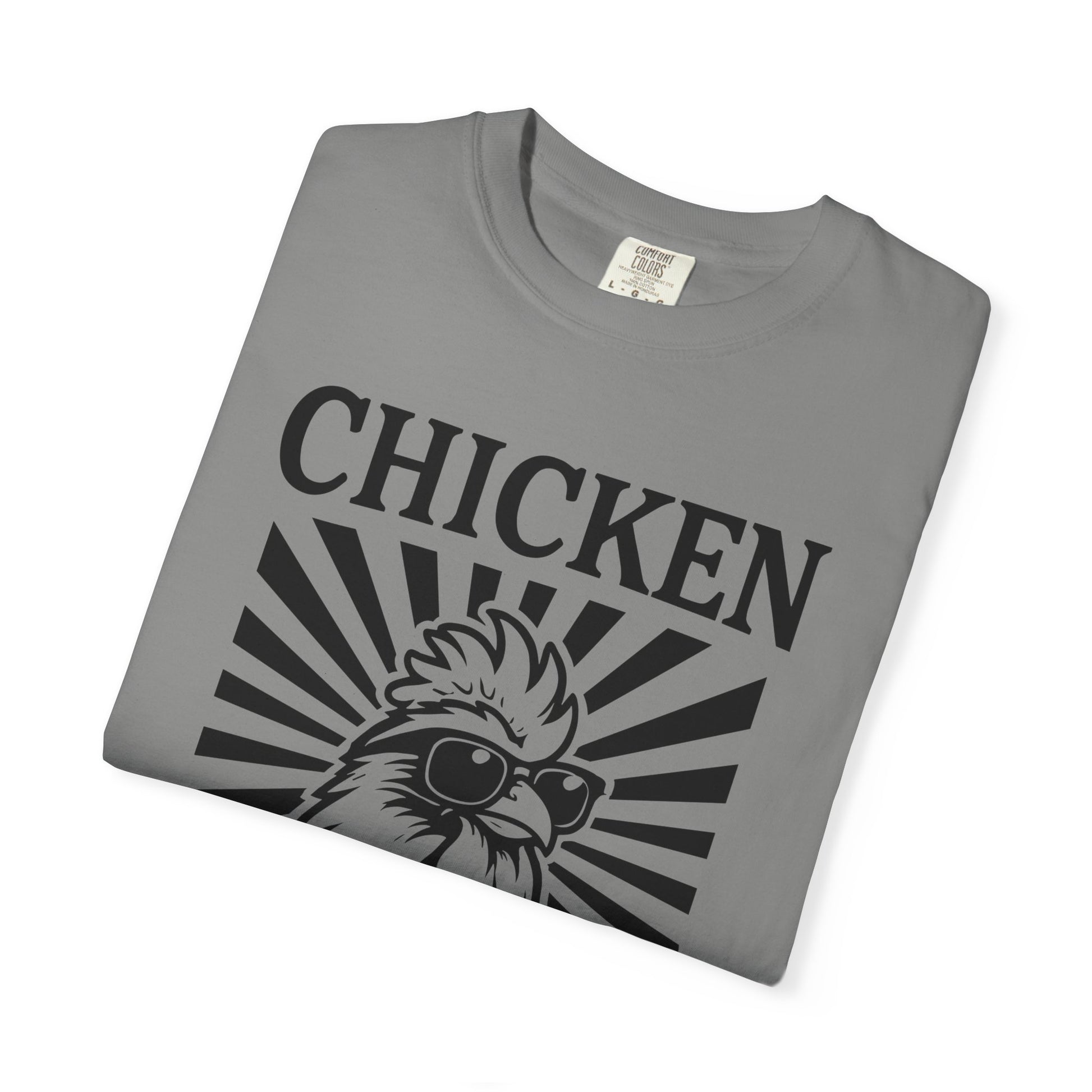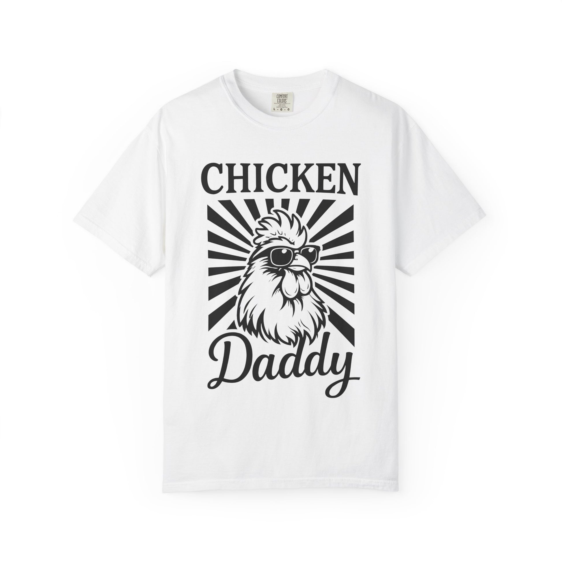 This heavyweight garment-dyed tee brings relaxed, lived-in comfort to backyard coops and weekend farm chores. The bold black-and-white “Chicken Daddy” graphic — a cool, roost-ready rooster with sunglasses framed by vintage sunburst rays — reads like a badge of honor for folks who care for feathered friends. The shirt’s soft, garment-dyed finish and substantial 6.1 oz cotton give it a broken-in feel from day one, so it wears in with your routine: tending hens, flipping breakfast, or grabbing coffee after early feedings. It sits loose across the shoulders and drapes naturally, so movement and chores feel easy. Available in a wide range of colors and sizes up to 4XL, this tee blends farmhouse attitude with durable construction that stands up to wash-and-wear life on the homestead.