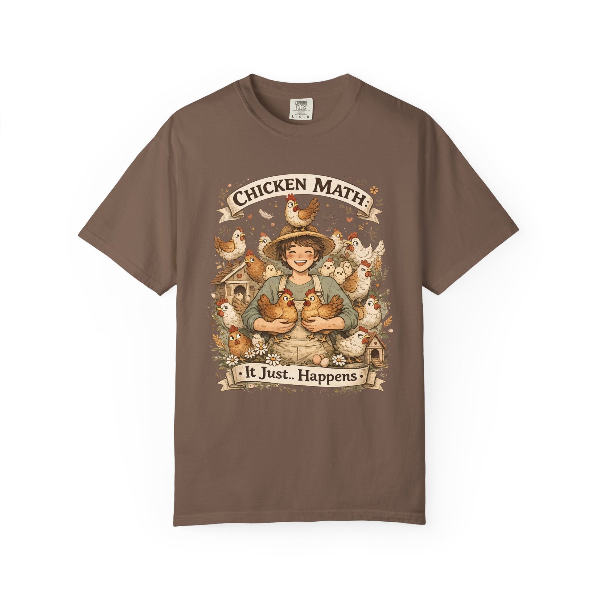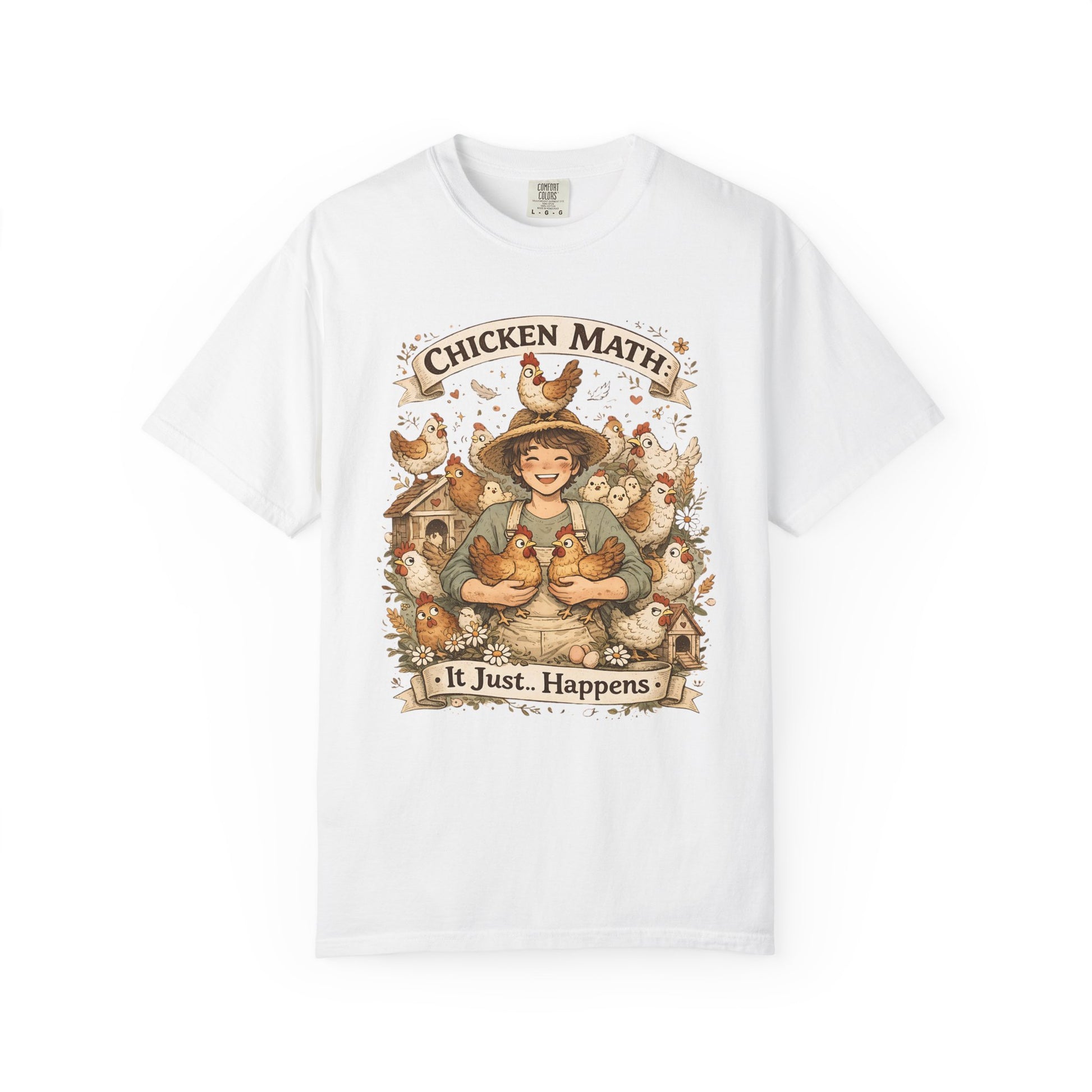 This charming, cottagecore-inspired design captures the universal truth of chicken keeping: the birds multiply when you’re not looking. Featuring a joyful chicken keeper holding exactly two chickens while chaos unfolds all around them, the illustration tells the story every poultry lover knows too well. From curious side-eye hens to chickens popping up in unexpected places, this design celebrates the lovable madness of backyard flocks.