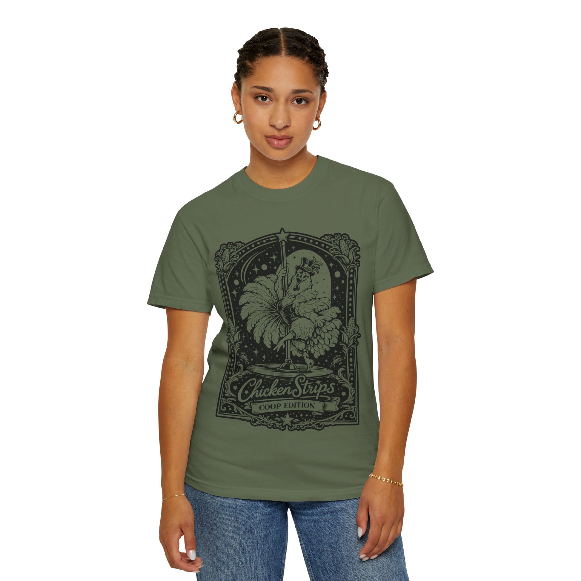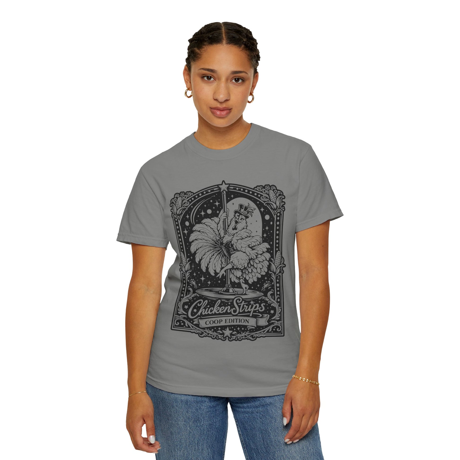 Add bold humor and farmhouse attitude to your collection with Chicken Strips Coop Edition. This playful illustration reimagines classic stage-show flair with a confident chicken twist, blending cheeky humor and rustic charm into one unforgettable design.