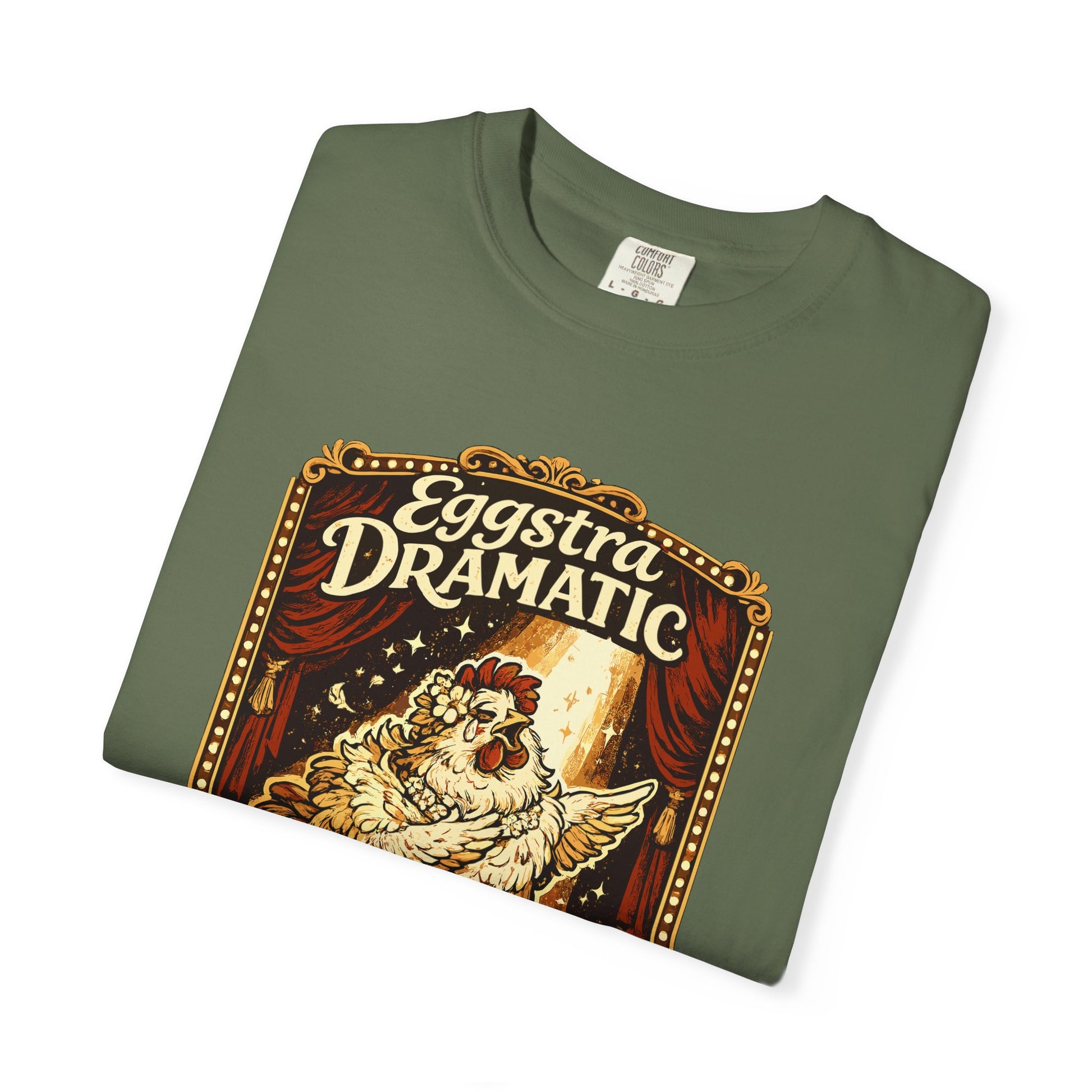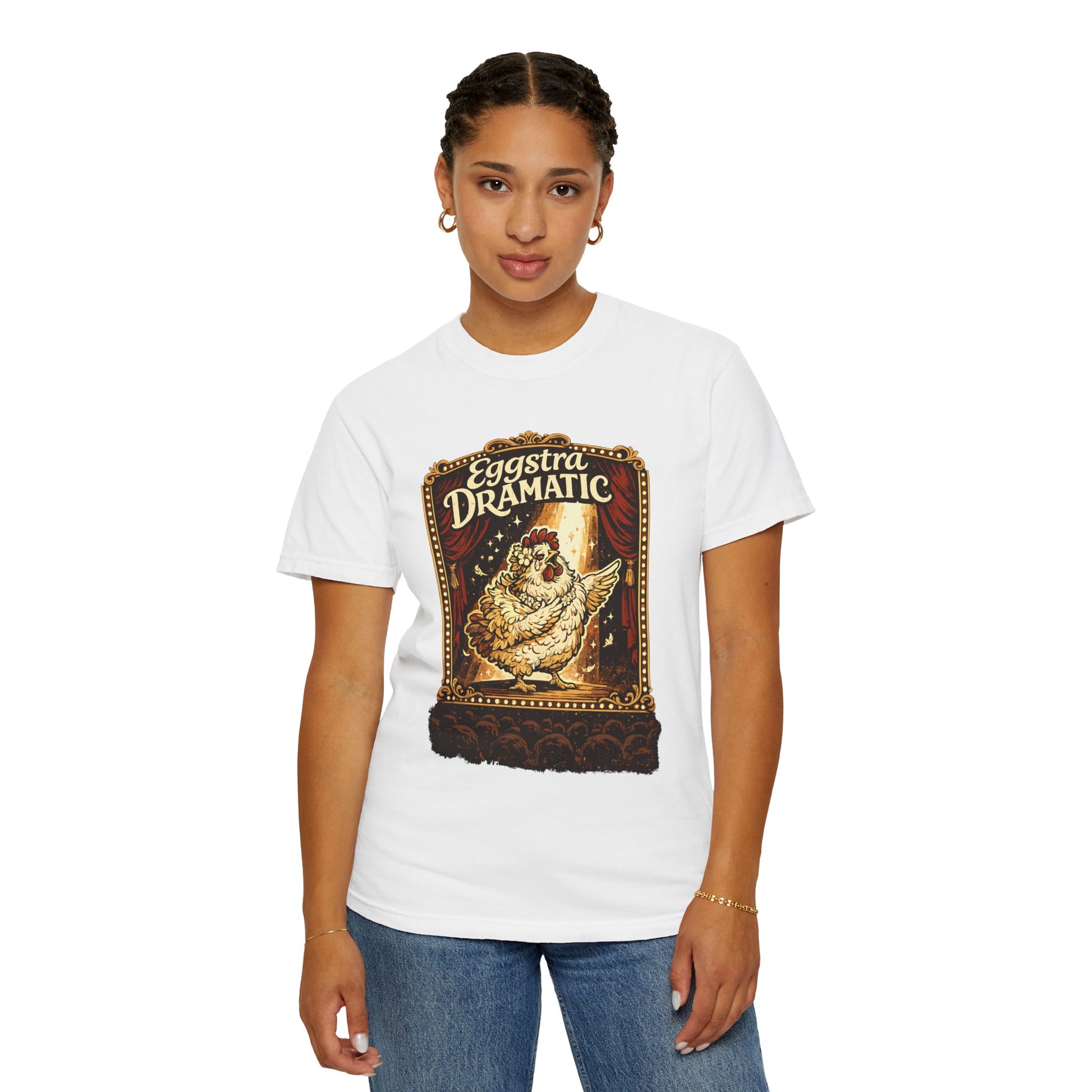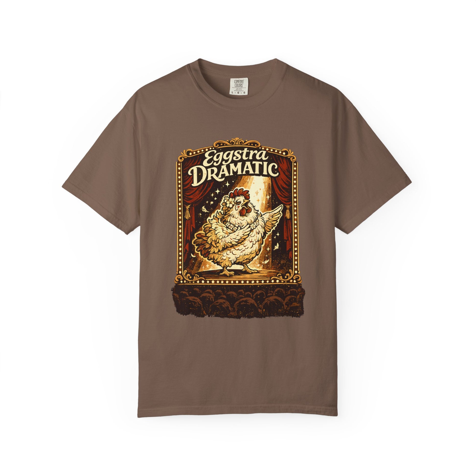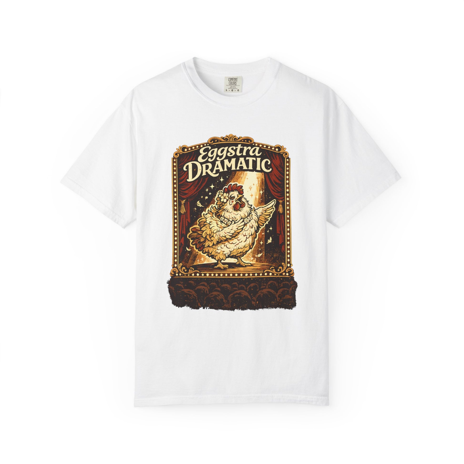 Eggstra Dramatic Hen T-Shirt — Theatrical Spotlight Chicken Tee