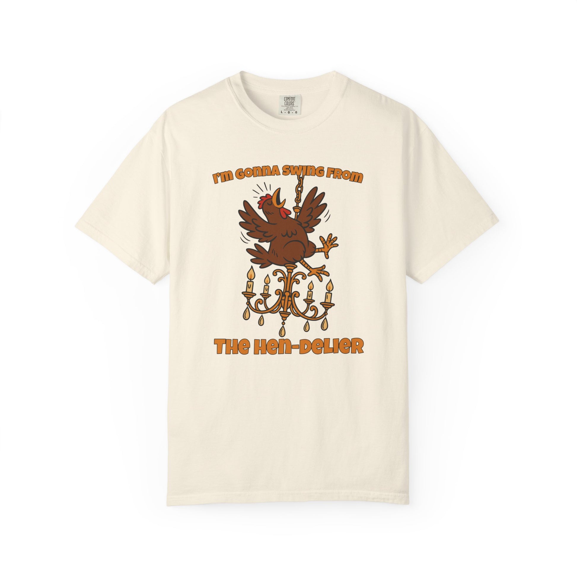 This hilarious chicken-themed design features a dramatic hen mid-swing on a golden chandelier, belting her heart out like a true coop diva. Inspired by pop ballads and barnyard chaos, this bold cartoon illustration is perfect for chicken lovers, homesteaders, and anyone who appreciates a little feathered flair. With thick outlines and vintage vibes.